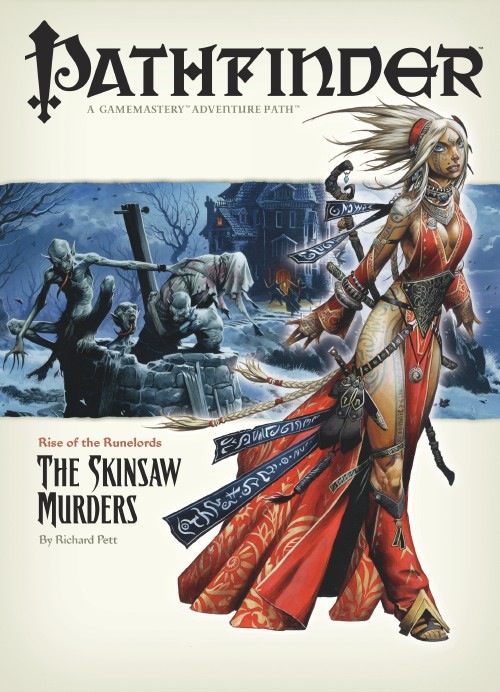 The second part of the Rise of the Runelords campaign, The Skinsaw Murders adds a a lot of of horror trappings to the fantasy formula, with great results. The opening chapters of the adventure range from a slasher killer, a sinister hospital, ghoul attacks, and a journey into a haunted house, while later chapters return … Continue reading Pathfinder Revisited – Rise of the Runelords Part Two: The Skinsaw Murders